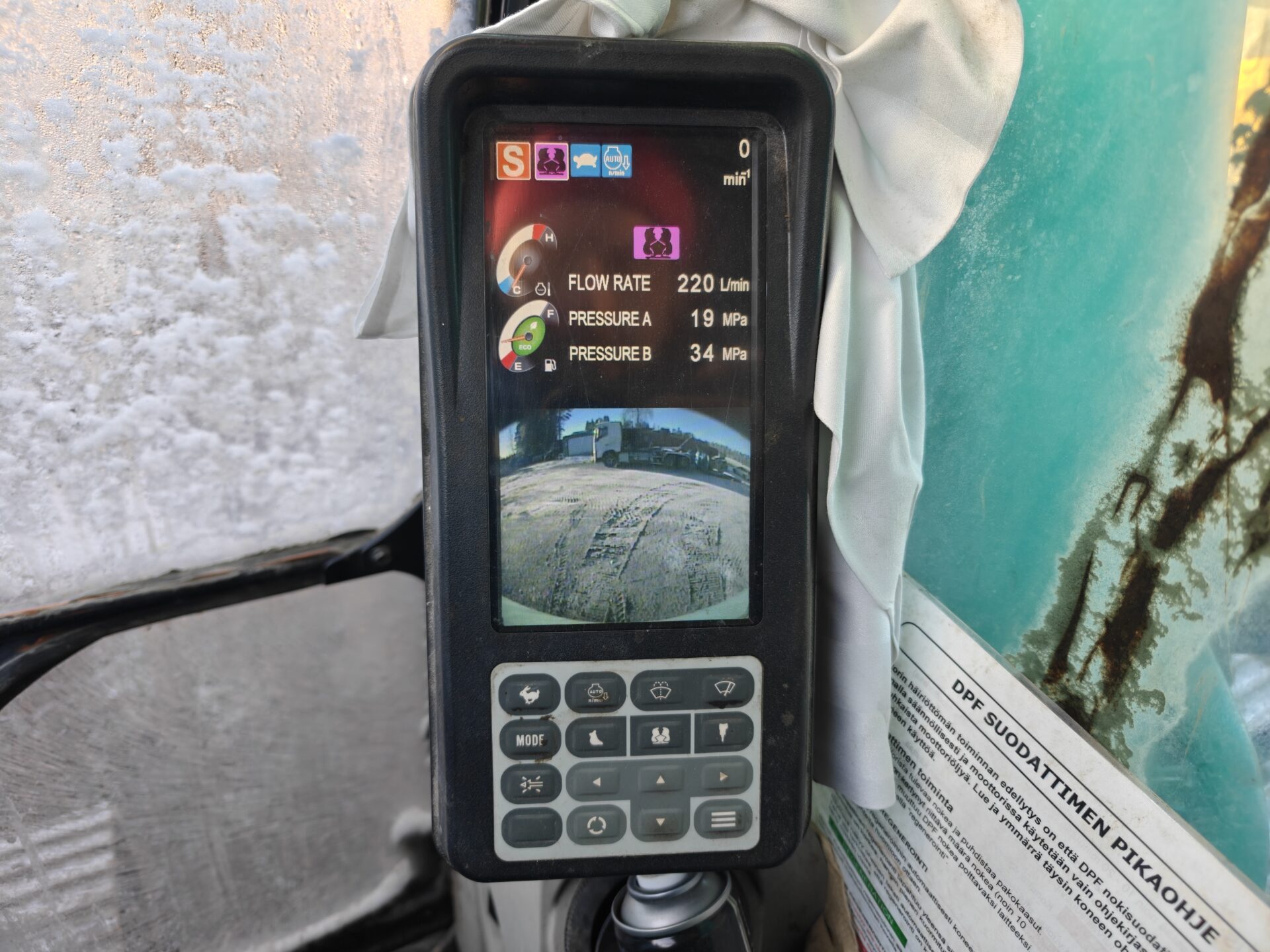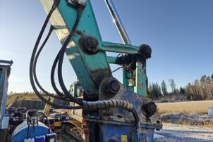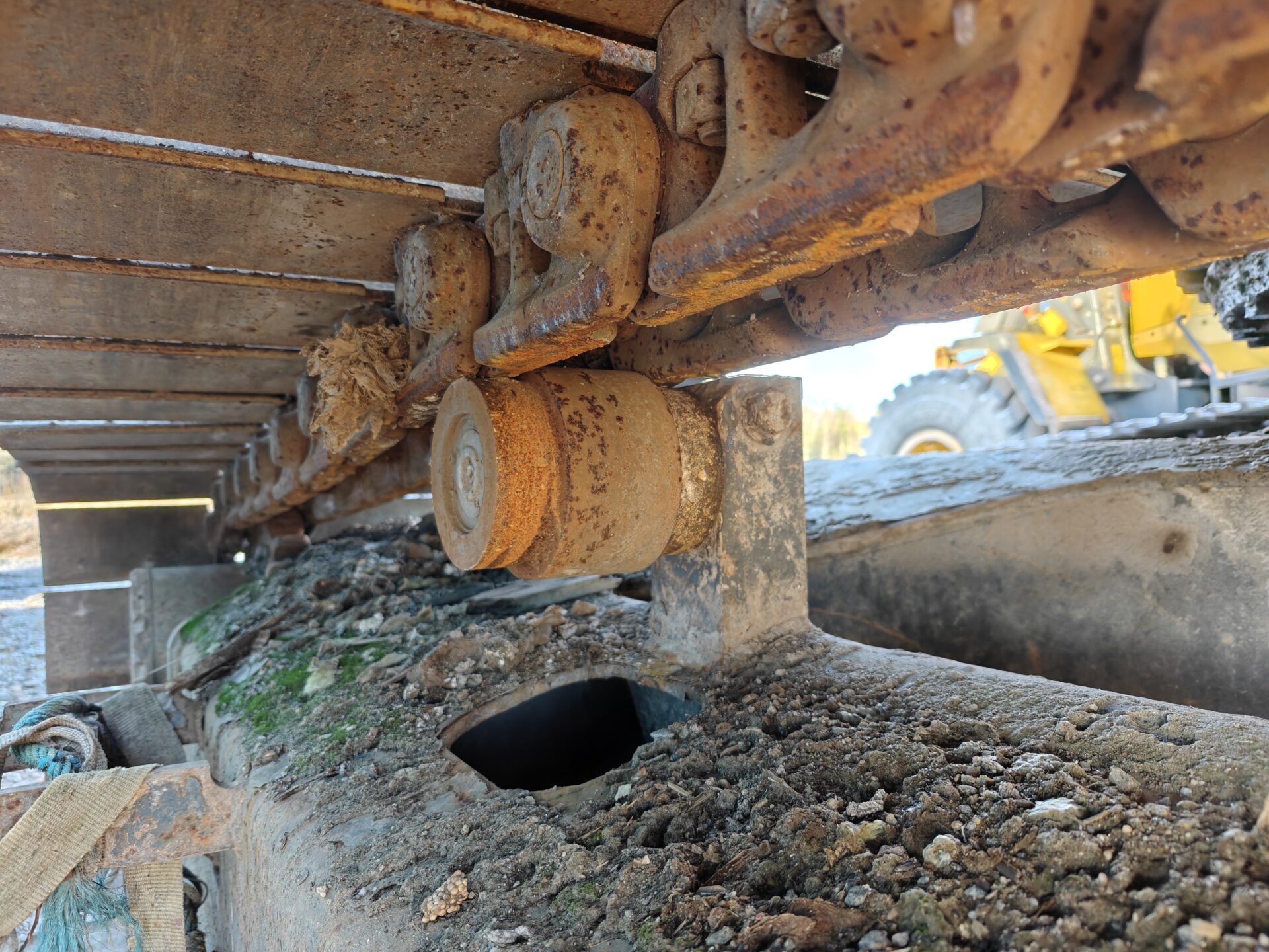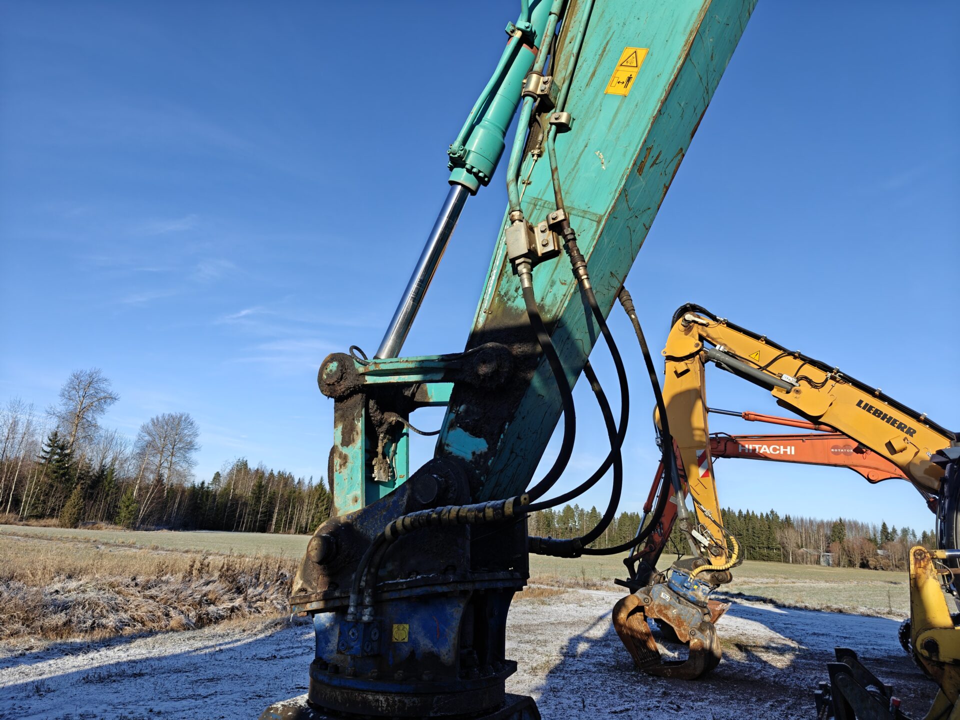 Kone on ollut materiaalin käsittelyssä, joten kone seisonut paikallaan ja nostellut suhteessa keveitä lasteja.