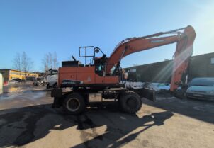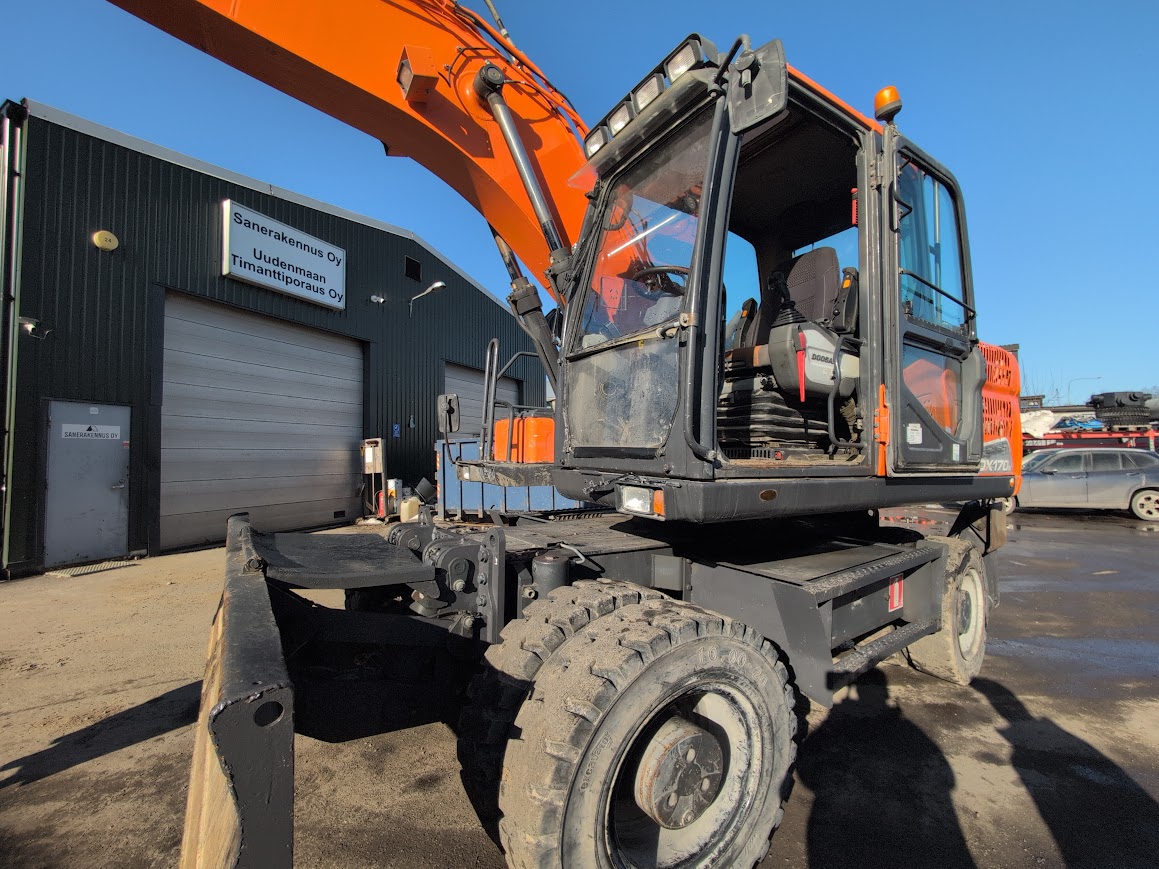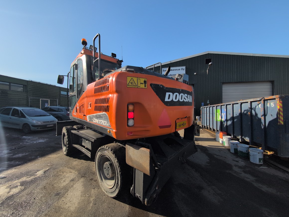Tarjolla luotettava Doosan DX170W-5 pyöräalustainen kaivinkone vuodelta 2015. Kone ollut viimeajat jätteenkäsittelyssä – kone on hyvässä toimintakunnossa.