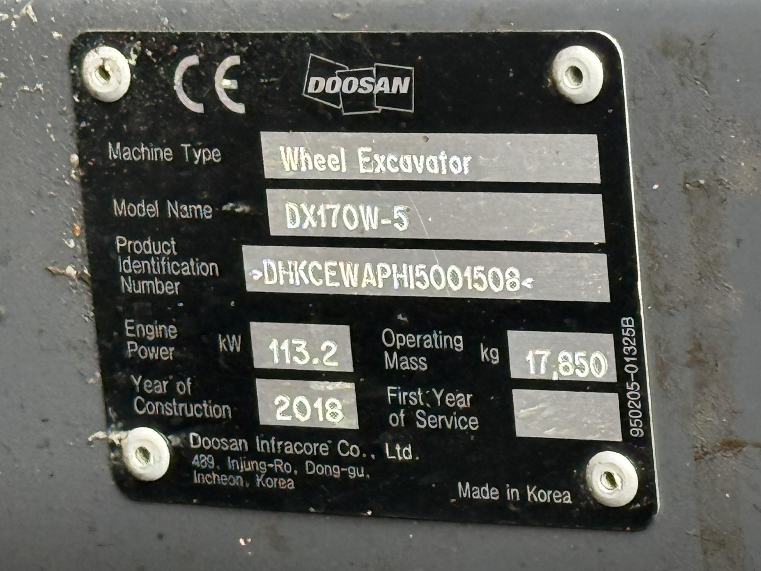 Інша інформаціяDoosan DX170W
