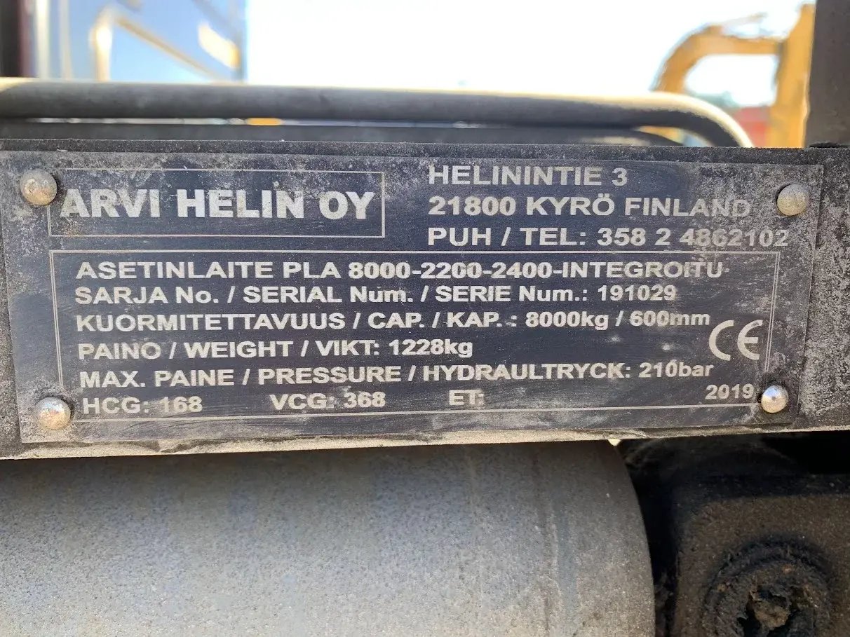 -Arvi Helin asetinlaite leveydellä 2200mm, jossa haarukat mitalla 2400mm