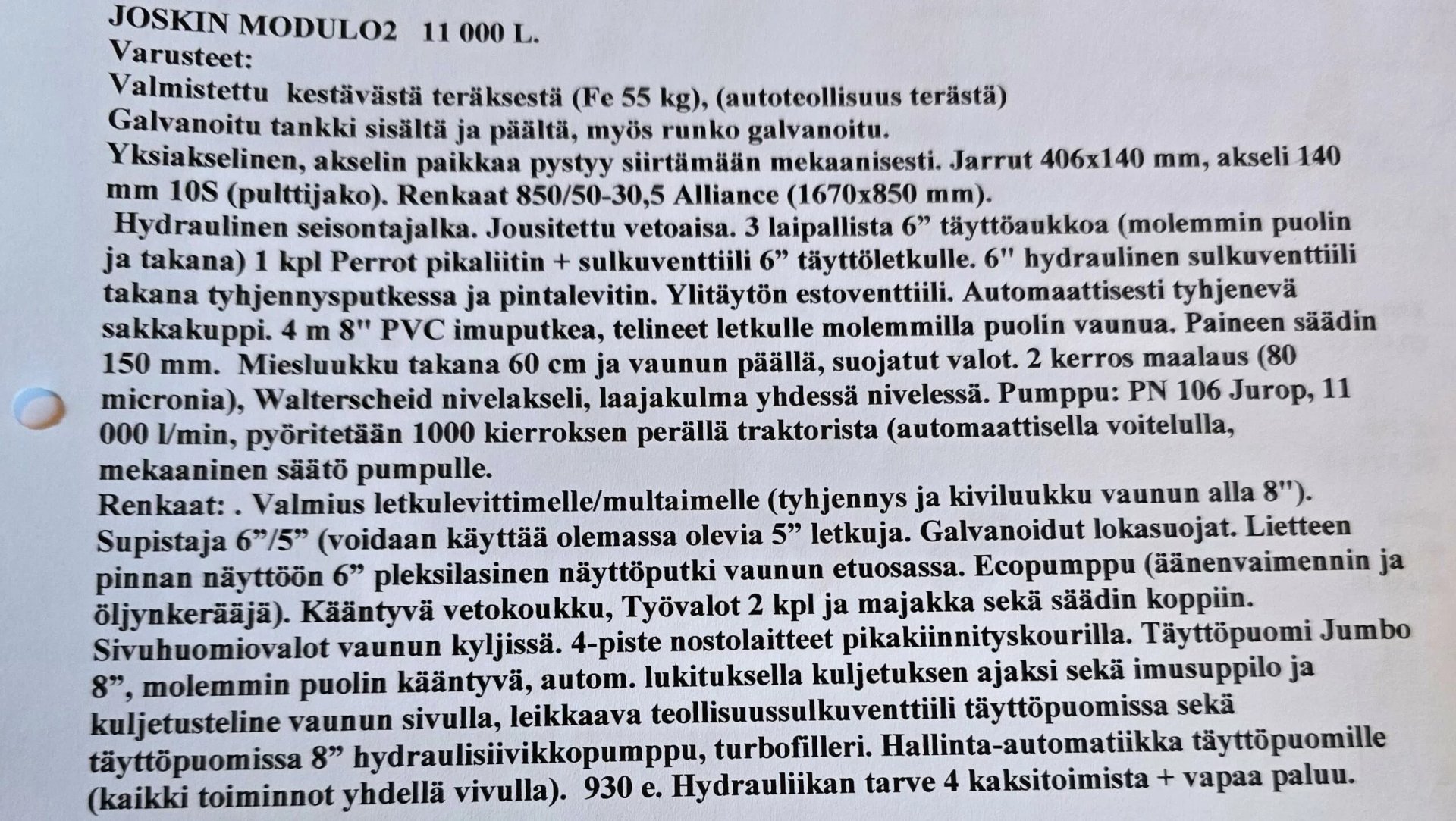 Vaunun tilavuus. 11000L