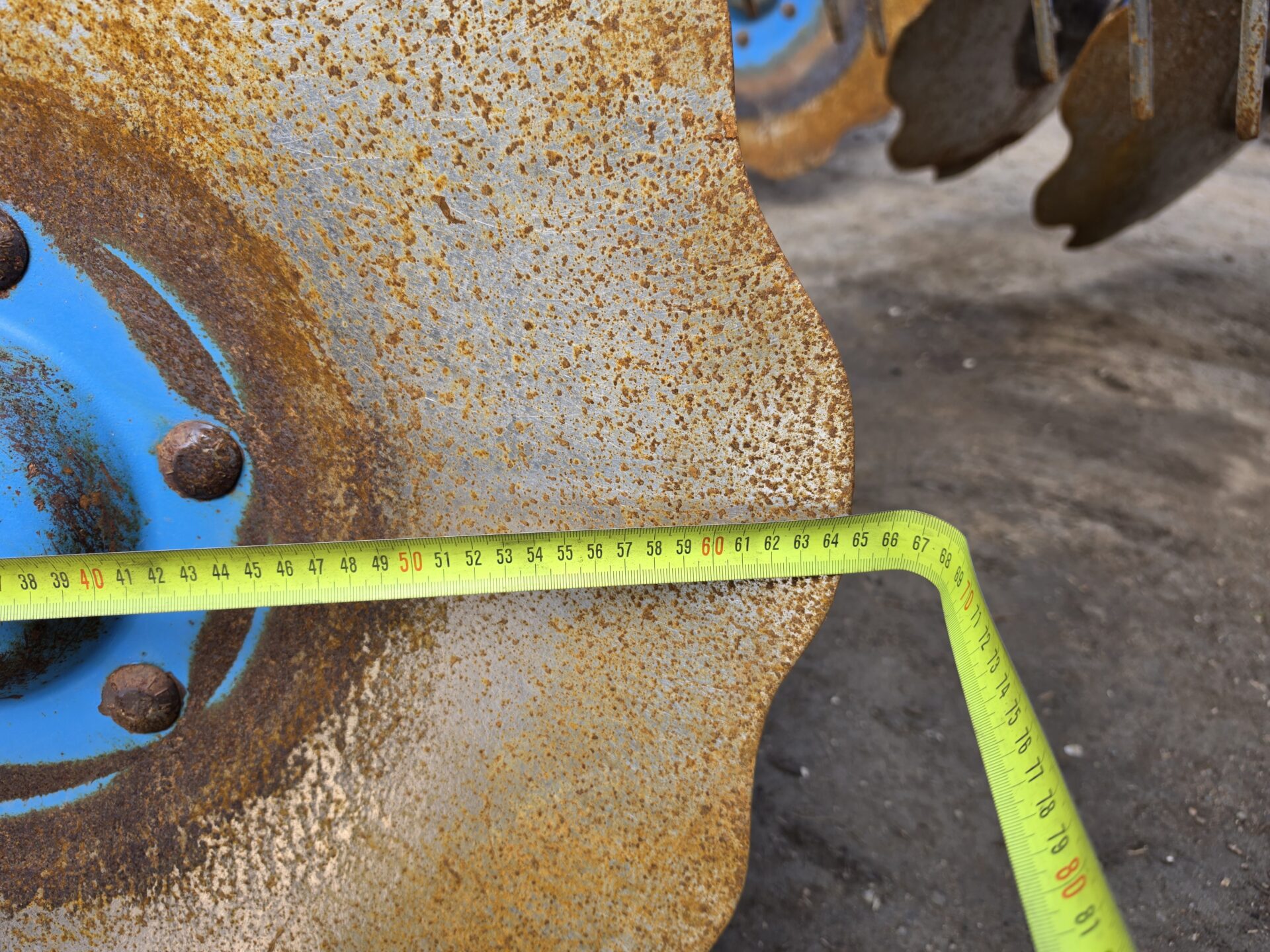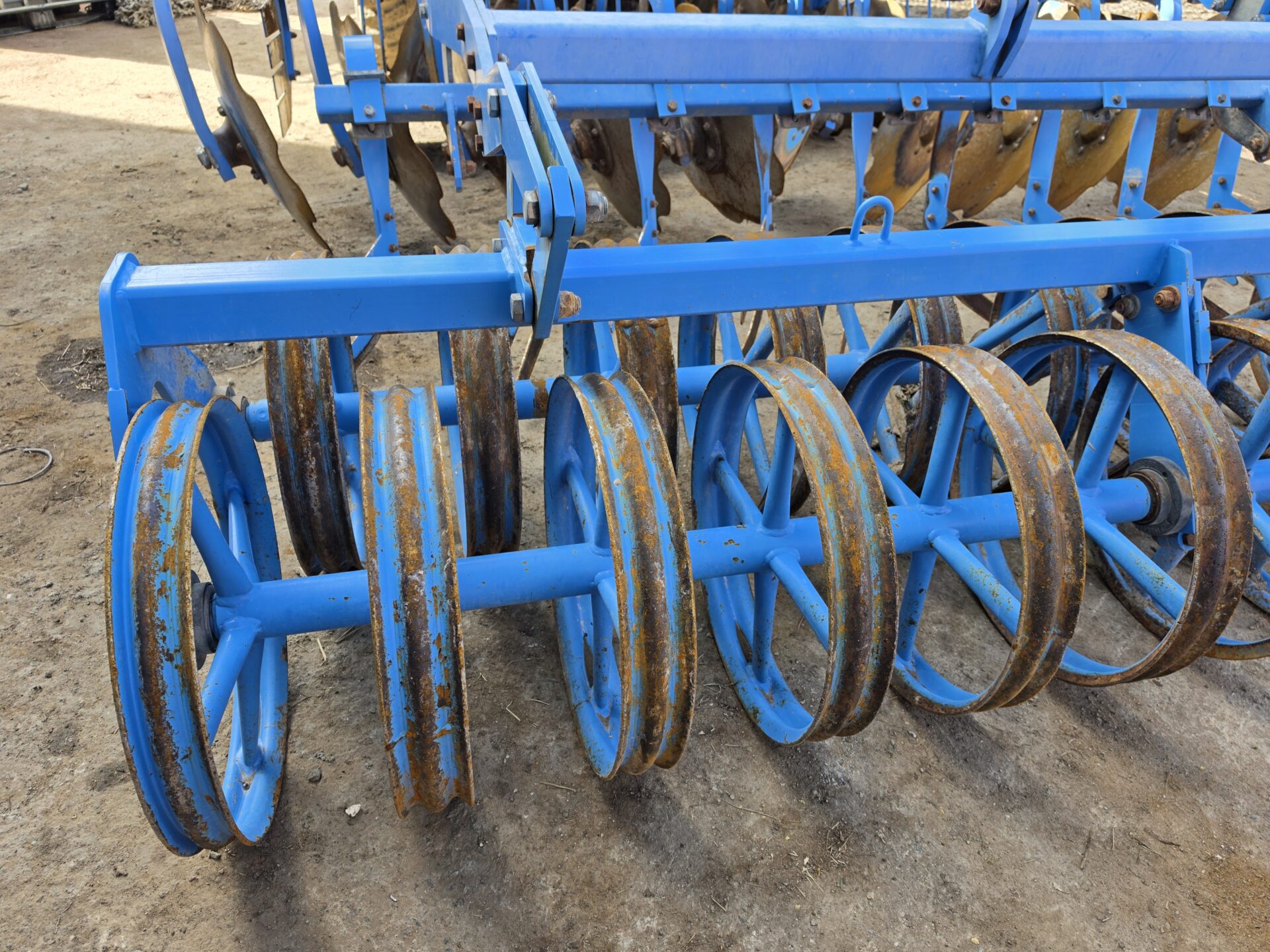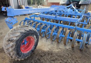 Дуже хороший стан, лемківська торгівля. Майже бездоганна і доглянута машина для великого господарства. Діаметр пластин 65 см спереду і 69 см ззаду. На одній пластині відсутній невеликий шматочок, але це не заважає використанню. Транспортне колесо для полегшення переміщення по дорозі. Машина доставляється в новий будинок або до, або після гусениць, але не в розпал польових робіт. За деталями звертайтеся до продавця.