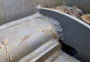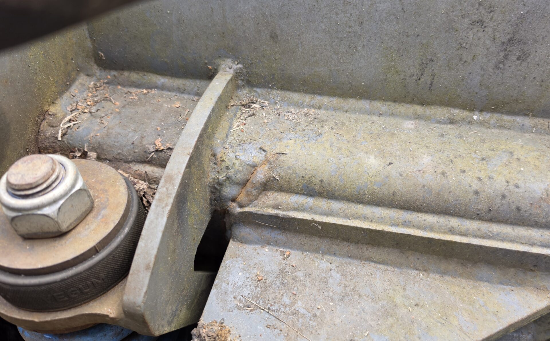 Ikäisekseen siistikuntoinen u-aura. Sovitteen työlaitteen puoleisessa päässä palkissa hiushalkeamat molemmin puolin jotka korjattava mahd pian.