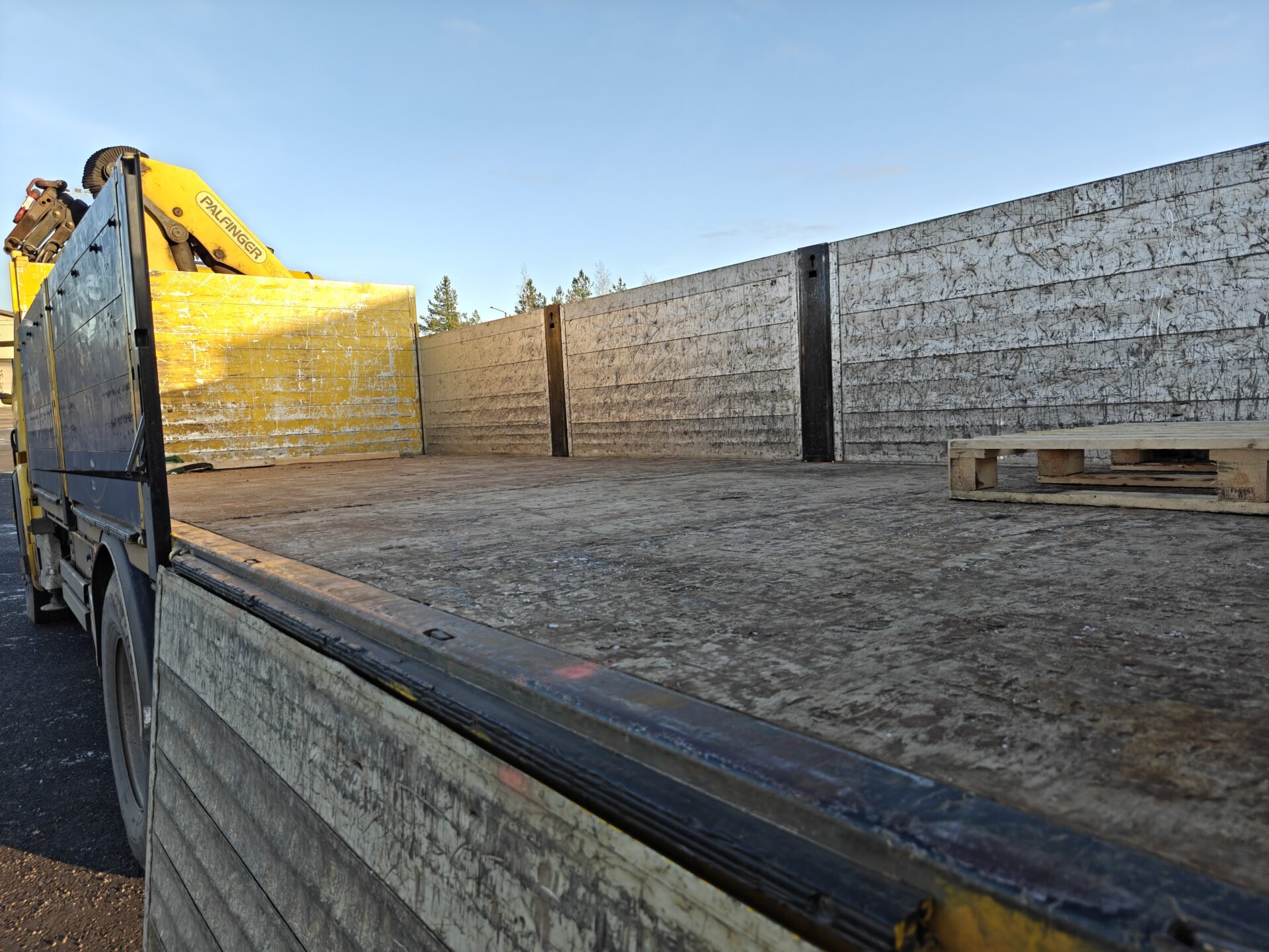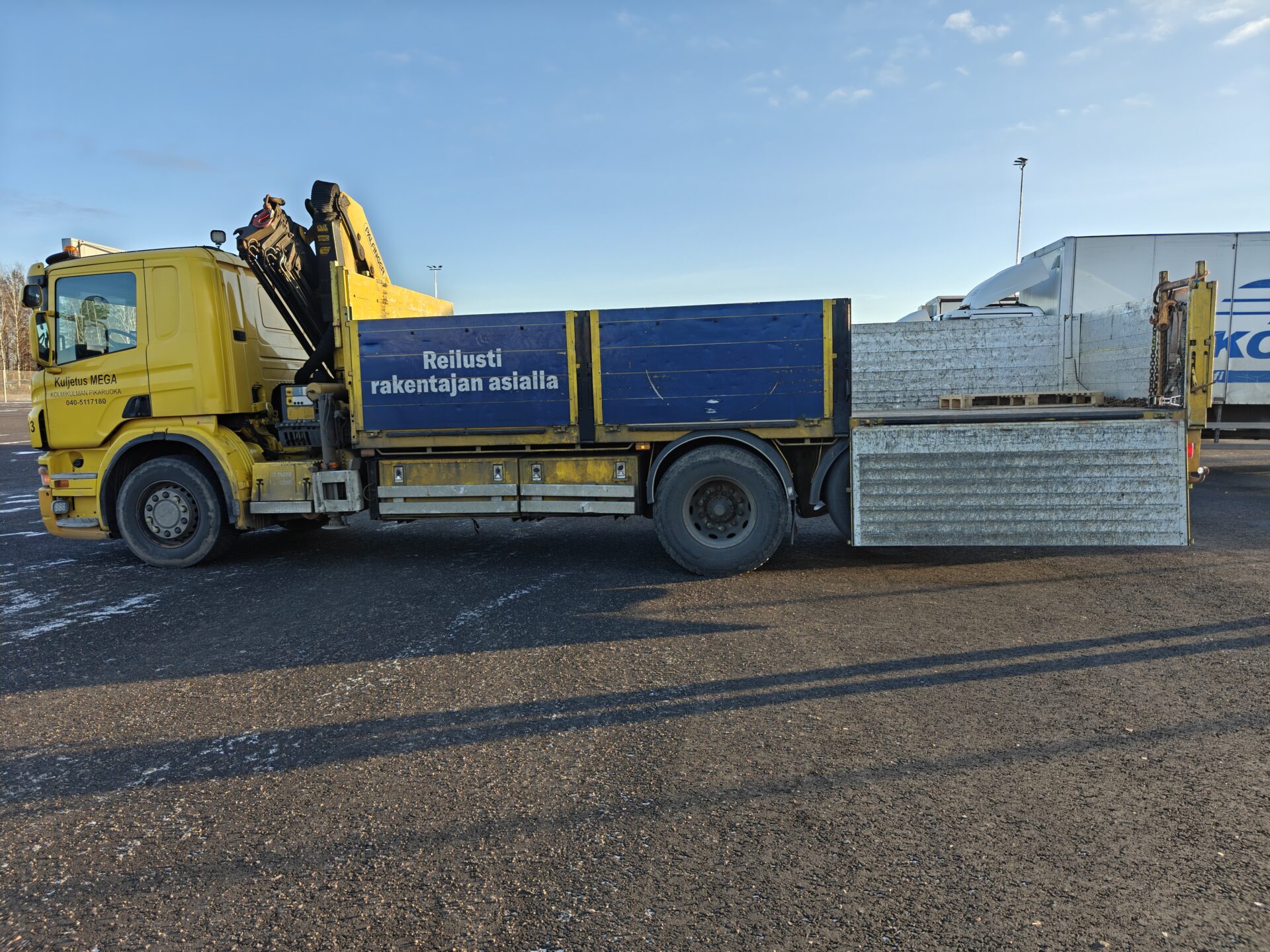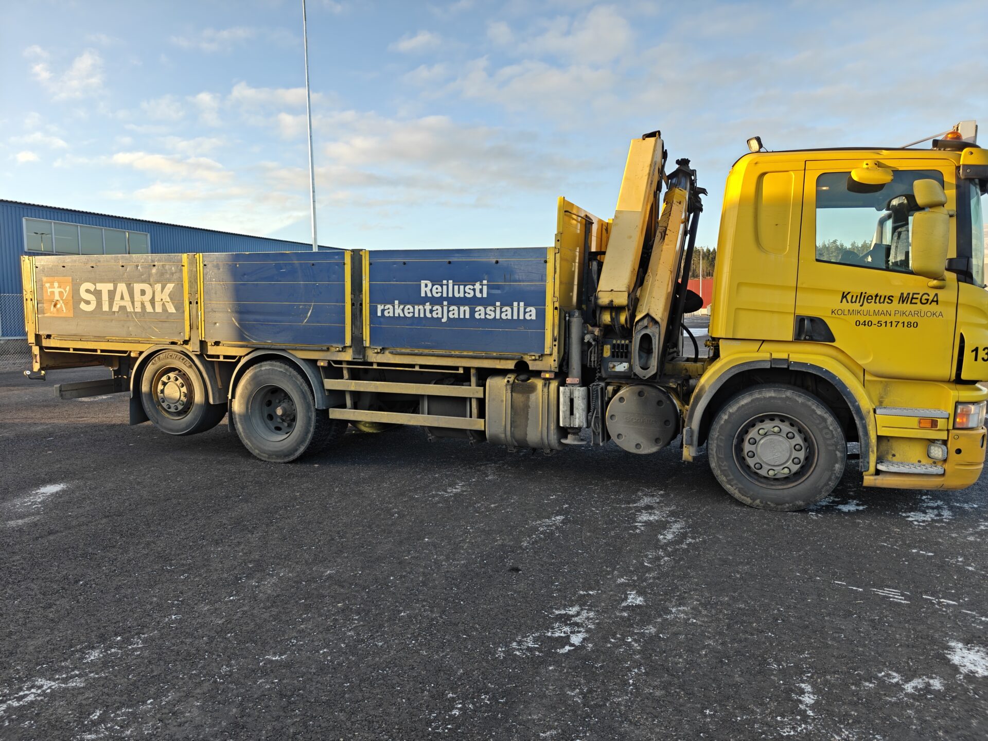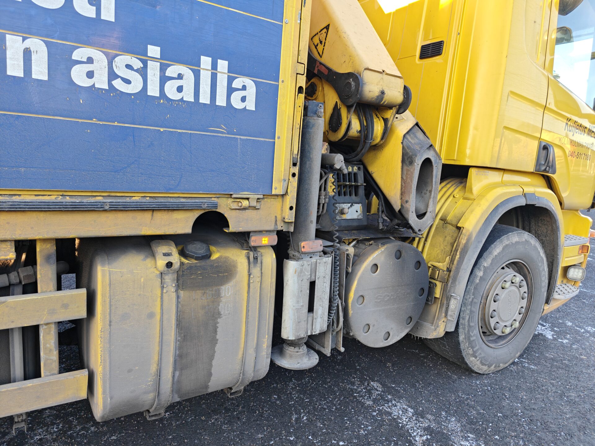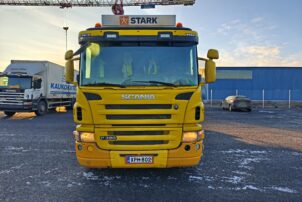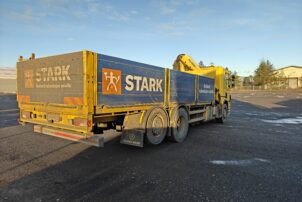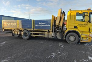 Hienossa kunnossa oleva Scania Palfingerin nosturilla.