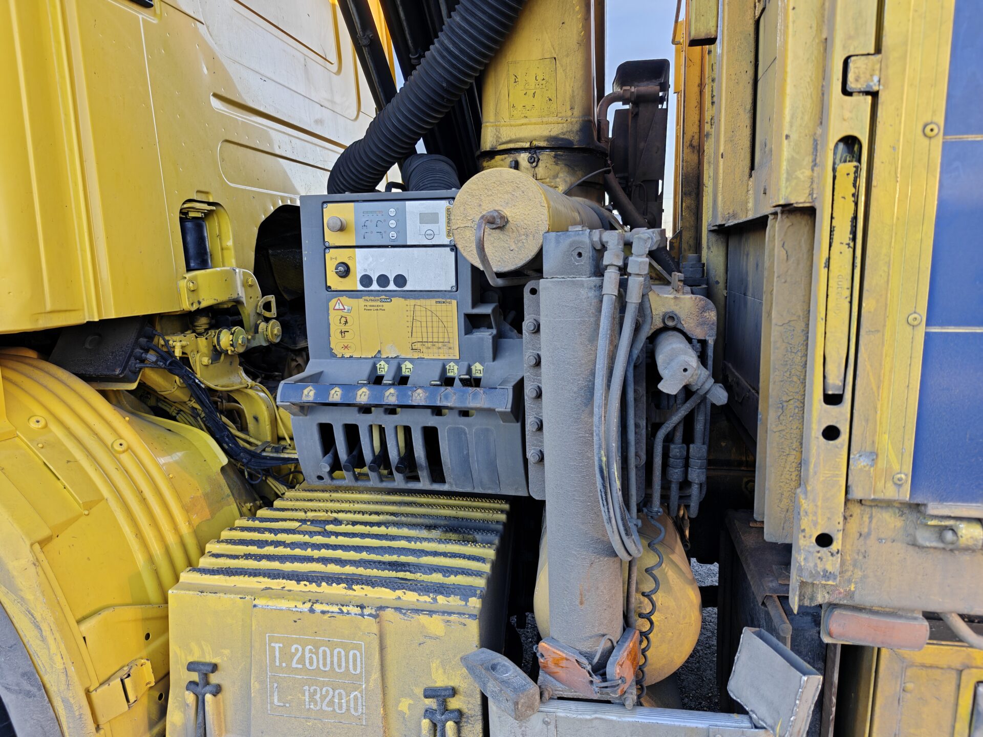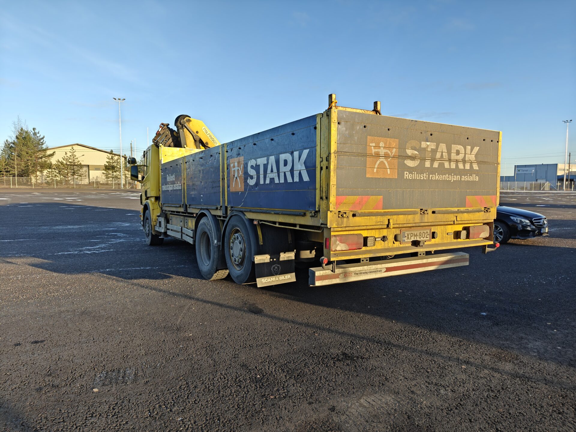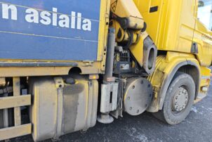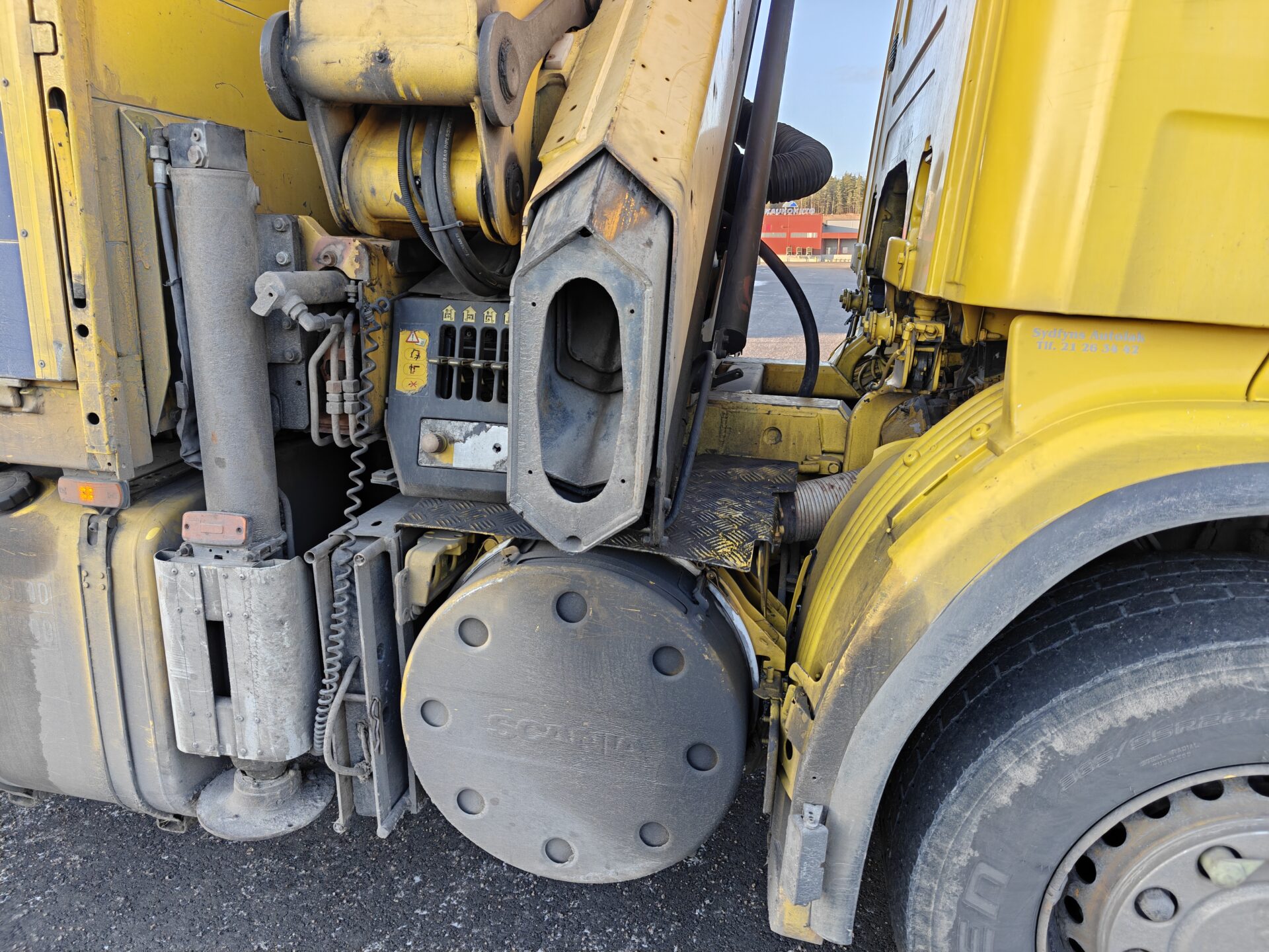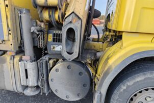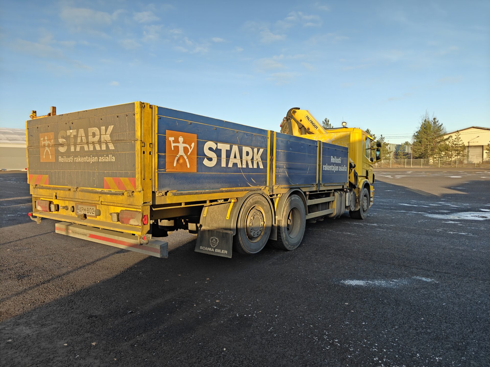Hienossa kunnossa oleva Scania Palfingerin nosturilla.