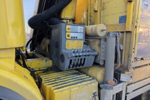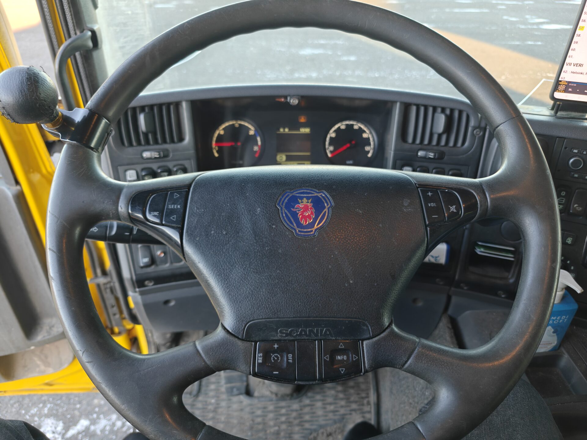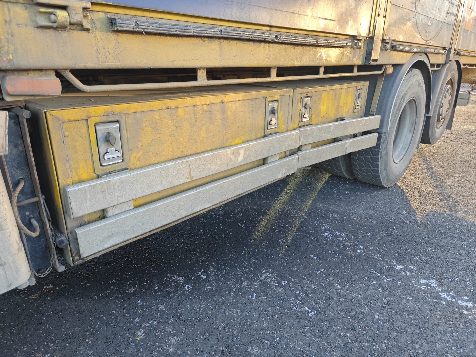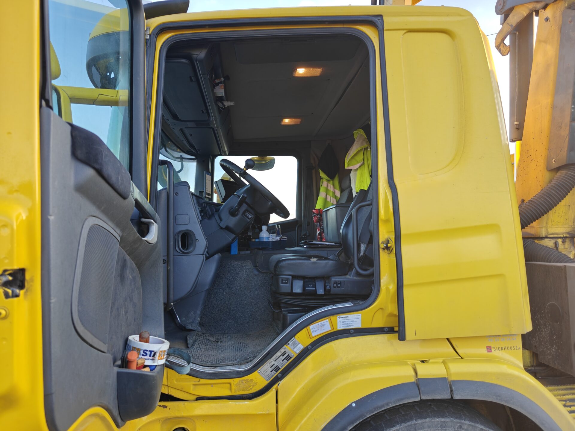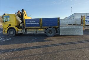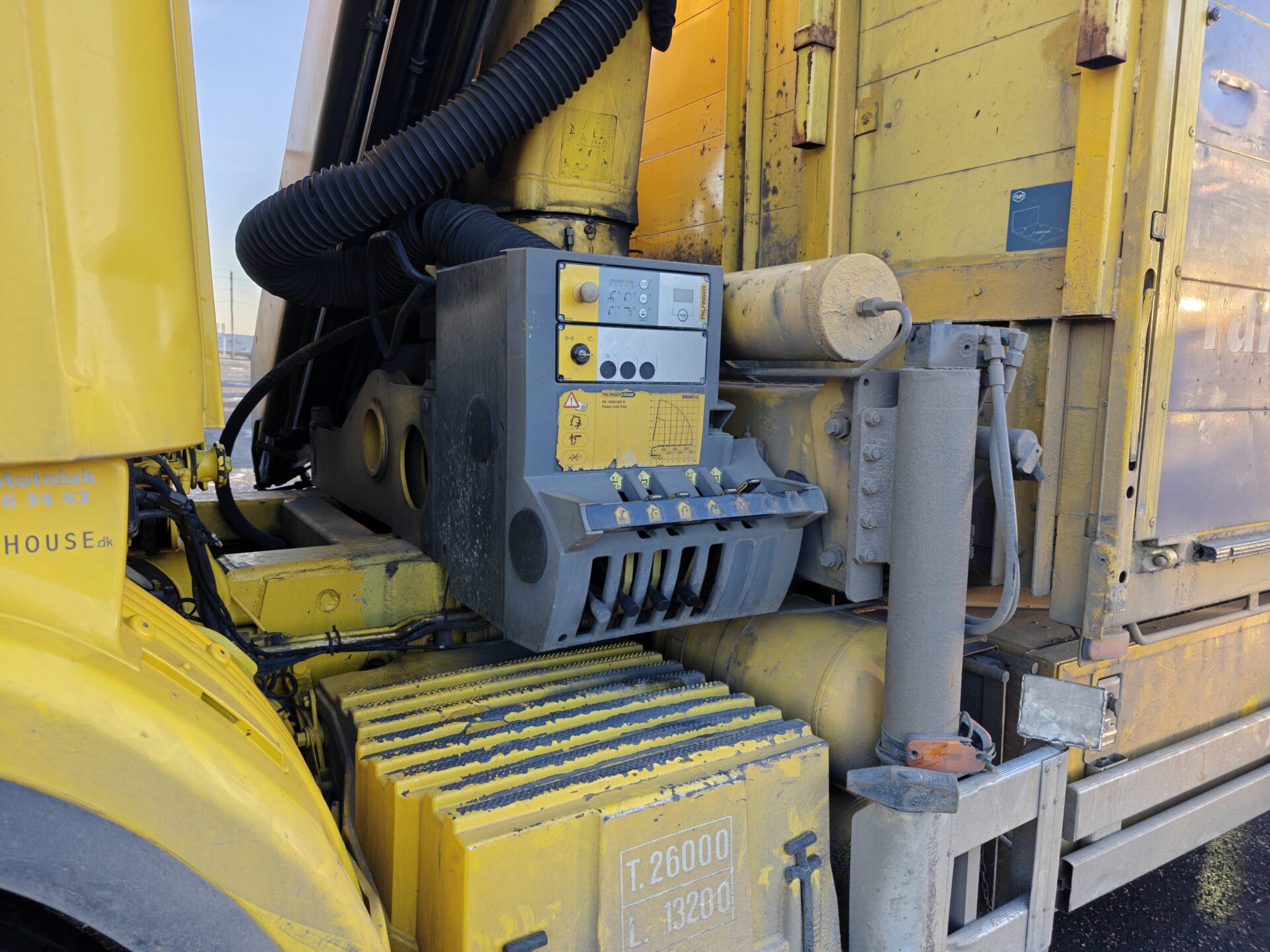 Hienossa kunnossa oleva Scania Palfingerin nosturilla.