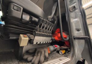 Parasta Södertäljen rautaa tarjolla: Manuaalivaihteisto, rautajouset ja vetävä teli. Kuvissa näkyvä huoltokontti ei sisälly hintaan.