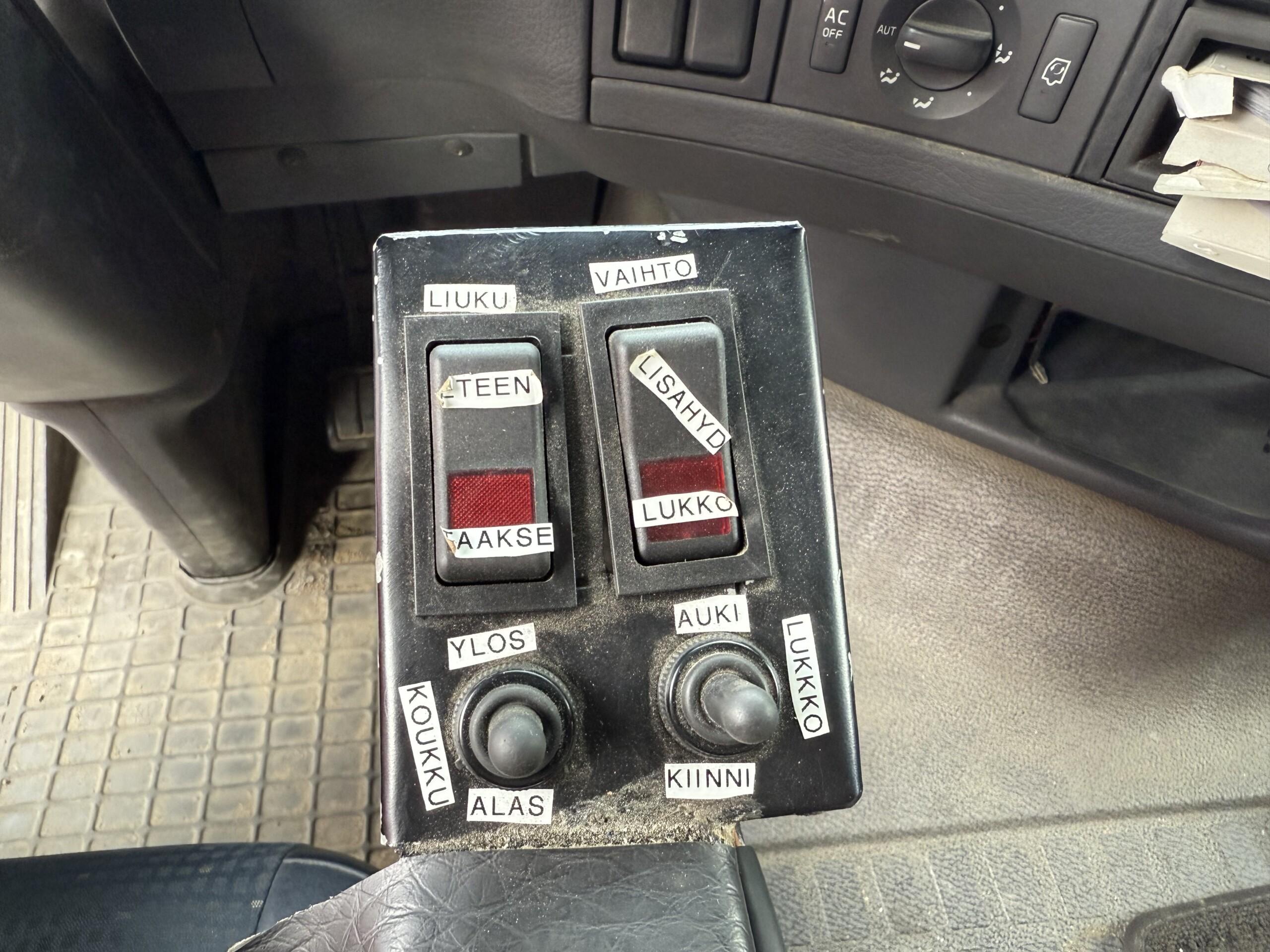 Koukkulaitteen sähköt rakennettu 2025 uudelleen ohjaamoon ja hallintapaneeli tuotu kuskin kyynärnojaan. Löytyy myös kaukosäädin.