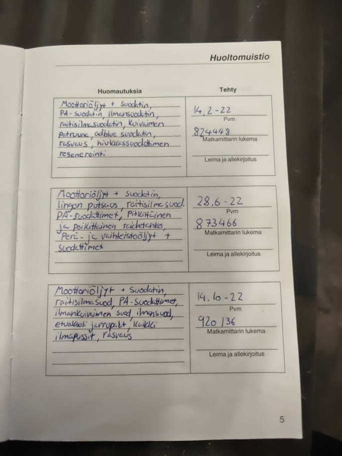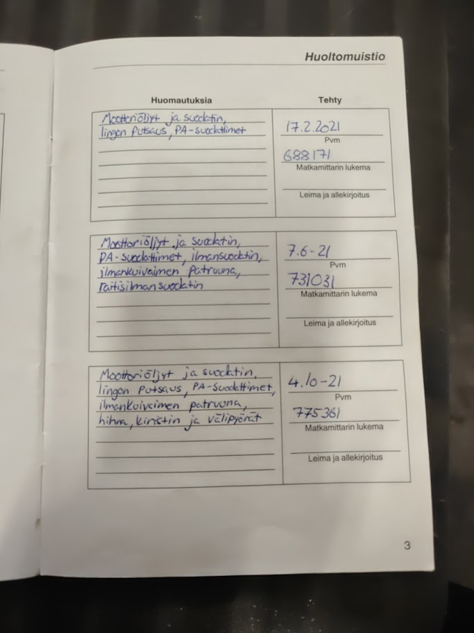 Täydellinen huoltohistoria (kuvat)