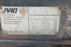 Kokonaismassa: 33600kg, tieliikenteessä suurin sallittu kokonaismassa 33600kg