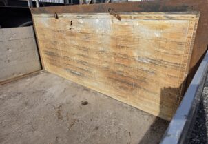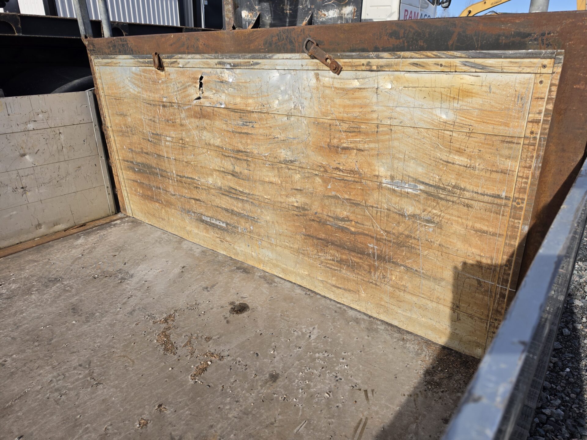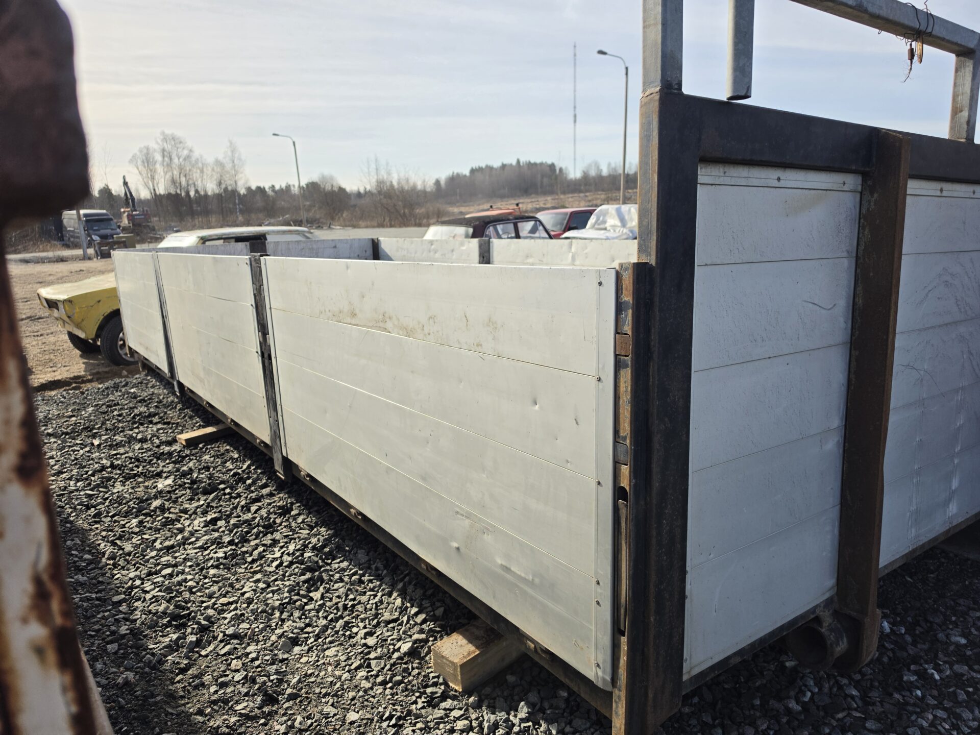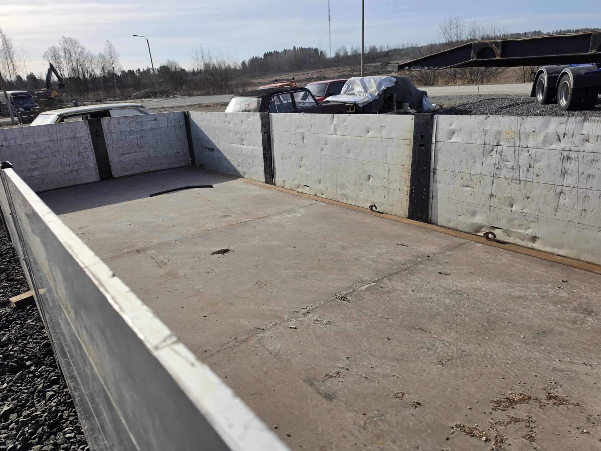 Ok kuntoinen vaihtolava irroitettavilla alumiinisilla laidoilla. Vasen etutolppa kaipaa vähän rakkautta ja kemppiliimaa, mutta muutoin ehjä ja siisti.