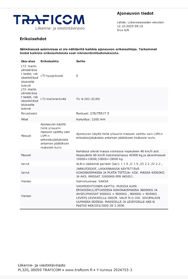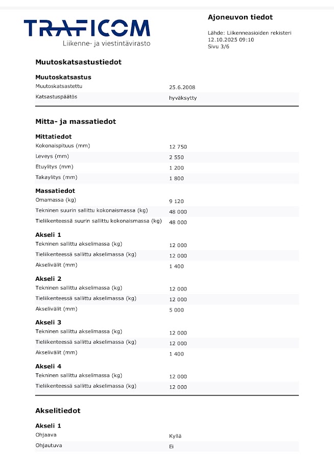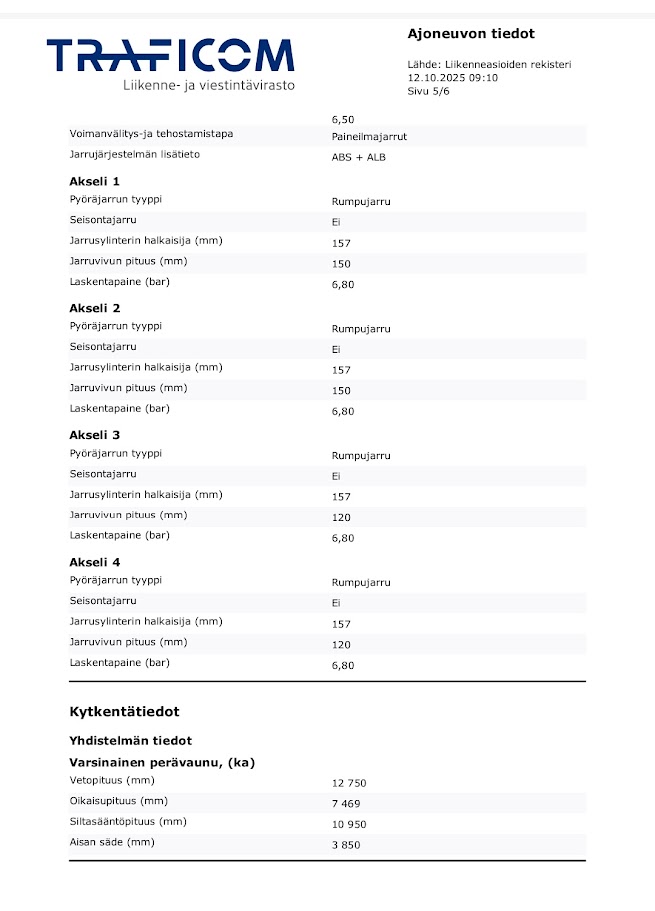 Kaikki perävaunun tarkat tekniset tiedot kuvissa (lähde: Trafi)