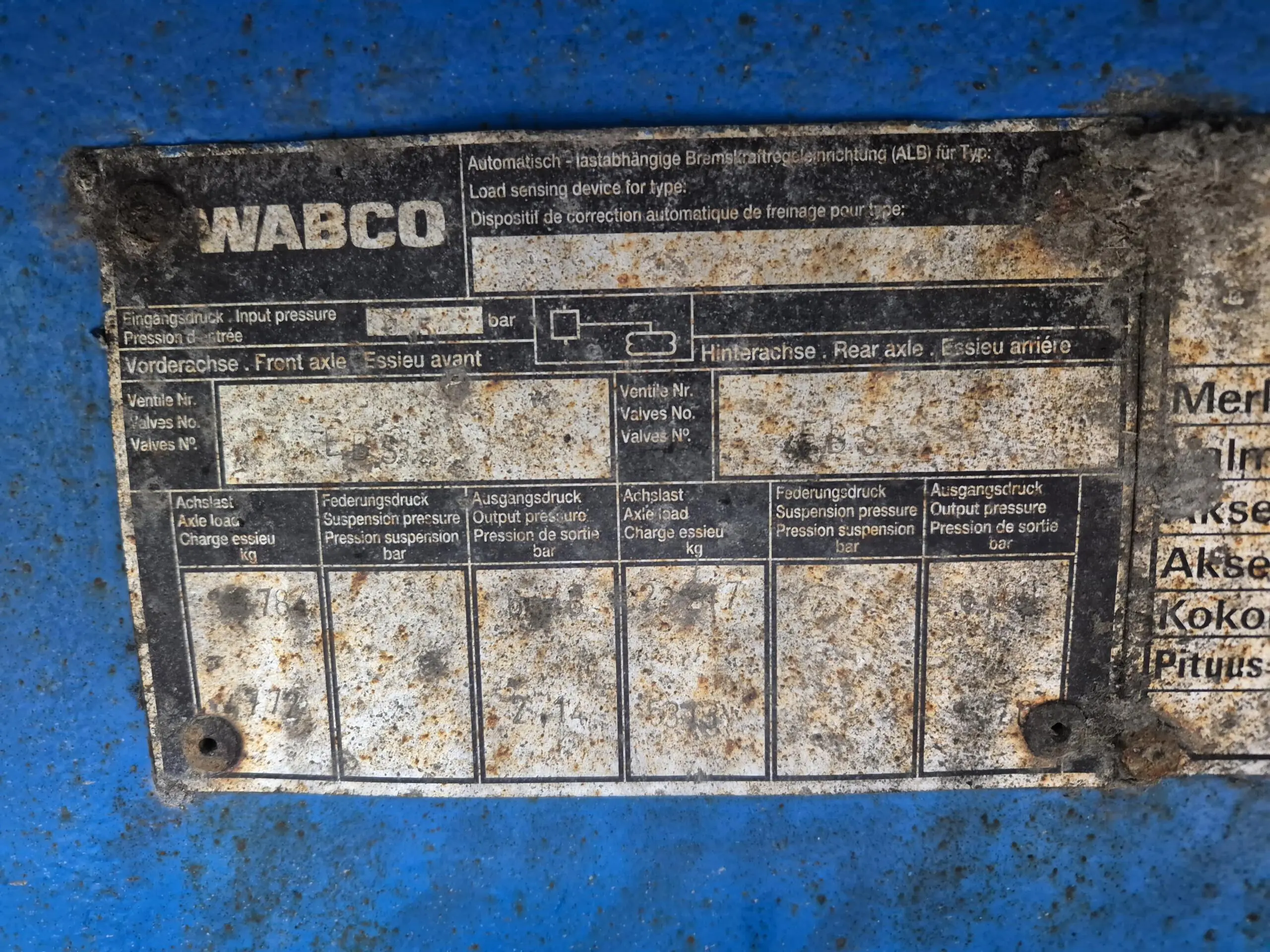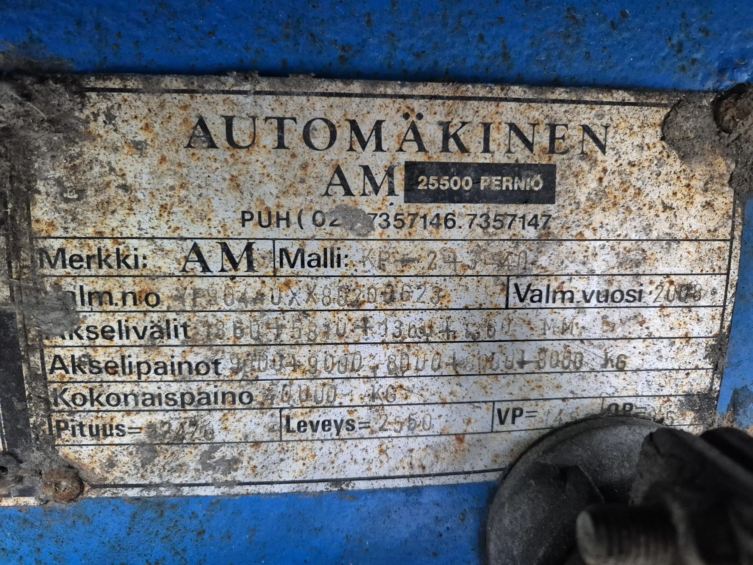 Akselimassat 9000kg, 9000kg, 8000kg, 8000kg, 8000kg
