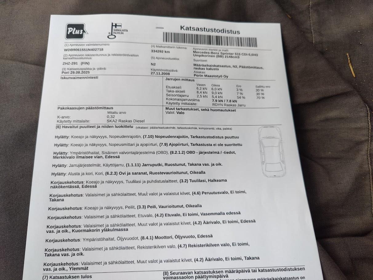 Auto on katsastamaton ja vaatii työtä uuden leiman saamiseksi.